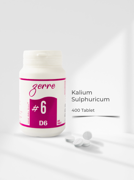 Kalium Sulfuricum Schüssler No.6 özellikle deri, mukoza ve demir içeren hücrelerde doğal olarak bulunur. Zerre Schüssler Doku Tuzu No.6, günlük yaşamın getirdiği çevresel faktörlere karşı cildinizi ve iç dengenizi hücresel düzeyde destekleyerek vücudun doğal tazelenme sürecine yardımcı olan bütünsel bir mineral desteği sunar.